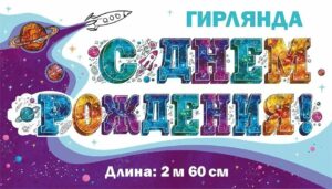 071115 Гирлянда «С Днем рождения!» (Космос), 2,6м