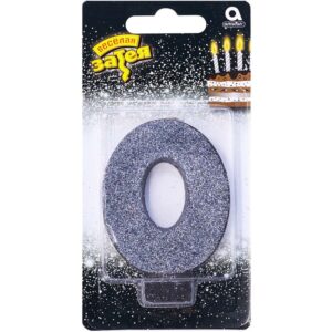 1502-4658 Свеча тортовая цифра «0» Черная глиттер