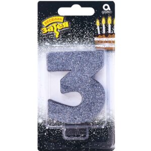 1502-4661 Свеча тортовая цифра «3» Черная глиттер