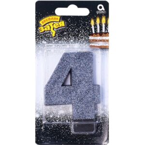 1502-4662 Свеча тортовая цифра «4» Черная глиттер