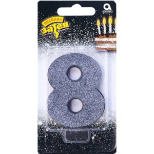 1502-4666 Свеча тортовая цифра «8» Черная глиттер