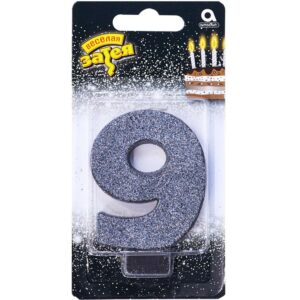 1502-4667 Свеча тортовая цифра «9» Черная глиттер