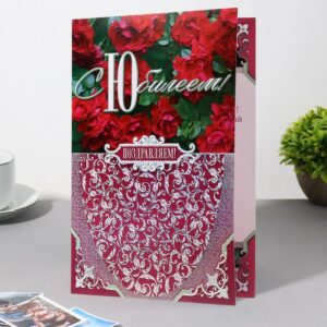 10111062 Открытка «С Юбилеем!» тиснение, гвоздики