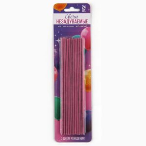 10104795 Свечи для торта незадуваемые, розовые, 24 шт., 16,8 х 0,2 см.