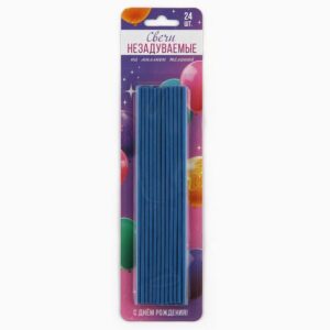 10104796 Свечи для торта незадуваемые, голубые, 16,8 х 0,2 см., 24 шт.