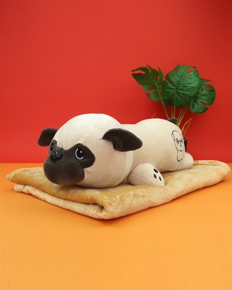 Мягкая игрушка Мопс с пледом, 50см
