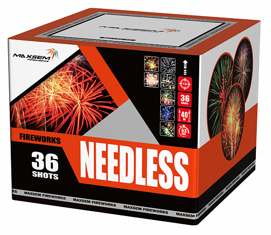 Батарея салютов, калибр 1,5″, 36 залпов, время работы до 63 сек, высота взлета до 45м.