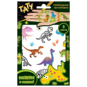 300673 Наклейки — татуировки светящиеся «Динозавры», 3 листа