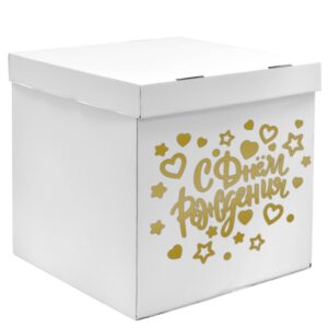2020-4 Наклейка С Днем Рождения! (сердца и звезды), 28*37 см, Золото