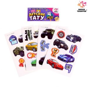 4949819 Детские переводки-татуировки на тело «Машинки» набор 4 шт.