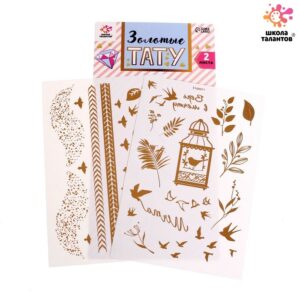 5160971 Детские татуировки-переводки, 10х15 см, набор 2 листа, золото, «Птички, растения»