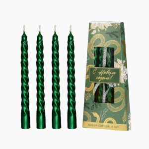 10253714 Набор свечи новогодние «С Новым годом!», 4 шт, зелёные, 14,5 х 1,5 см