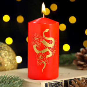 10536553 Свеча символ года, красная с золотой змеёй,5х10 см,