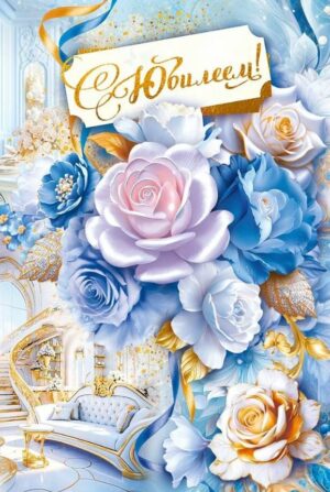 55869 Открытка «С Юбилеем!» Голубые розы А5
