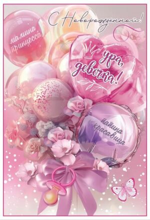 5301122 Открытка «С Новорожденной! Ура,девочка!» шары А5
