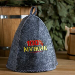 1594036 Шапка для бани с вышивкой из серого войлока » 100% мужик «