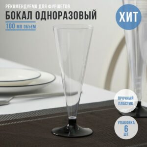 4517782 Фужеры одноразовые для шампанского «Конус», 150 мл, с чёрной ножкой 6 шт