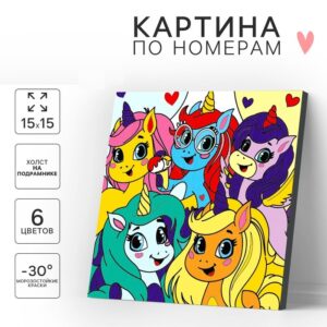 9883144 Картина по номерам «Единорожки-друзья», 15 х 15 см