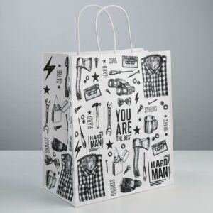 3823512 Пакет подарочный крафт Hard man, 28х32х15см