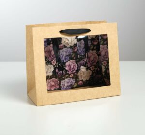 4766891 Пакет крафтовый с пластиковым окном «Flowers», 24 х 20 х 11см