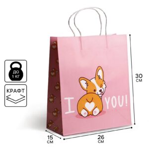 4783320 Пакет подарочный крафтовый «I love you», 26 х 30 х 11,5 см
