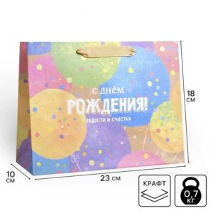 4764592 Пакет крафт «С днем рождения «, 23 х 18 х 10 см