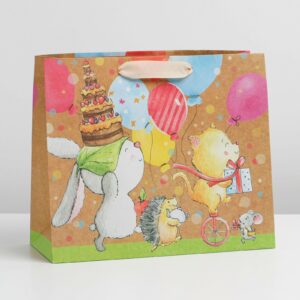 7303798 Пакет крафт «С днём рождения», 31х40х11,5 см