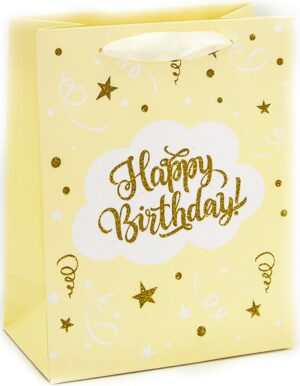 1065-B1 Пакет подарочный, С Днем Рождения, Кремовый, 23*18 см