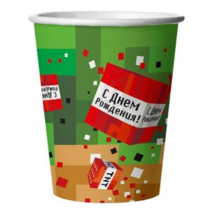 9516639 Стакан бумажный «Пиксели. С днём рождения!», в наборе 6 ш