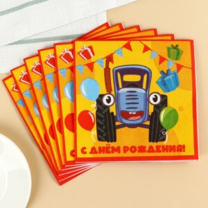 9537311 Салфетки бумажные «С днём рождения» Синий трактор, 33х33 см, 20 шт., 3-х слойные