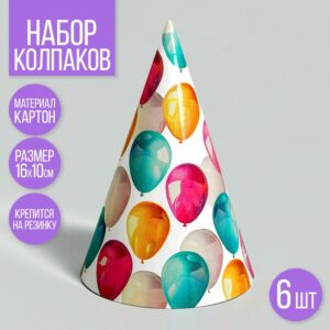 9520337 Колпак бумажный «С днём рождения. Шарики» 6шт.