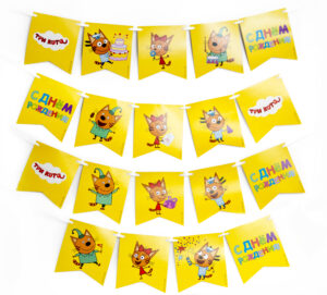 6014891 Гирлянда Флажки, Три Кота, С Днем Рождения! 300 см