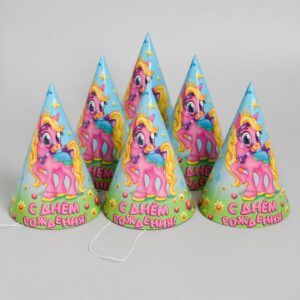 1033787 Колпак бумажный «С днем рождения»,Пони набор 6 шт.
