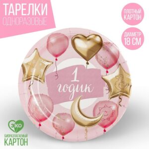 2844434 Тарелки «1 годик», розовый цвет, 18 см 10 шт.