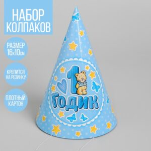 2844406 Бумажный колпак «1 годик. Малыш», 16см,цвет голубой