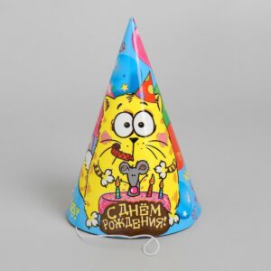 310192 Колпак бумажный «С днём рождения!», кот с мышкой, 6 шт