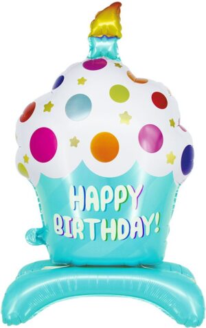 20012 ШФ Фигура 35″(89см) Кекс на День Рождения на подставке, Бирюзовый