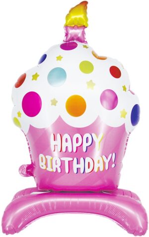 20011 ШФ Фигура 35″(89см) Кекс на День Рождения на подставке, Розовый