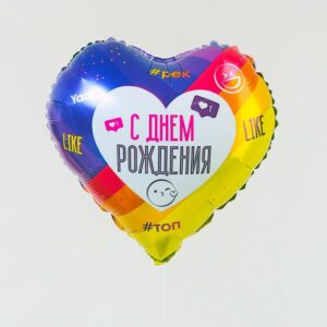 6932464 ШФ 18″ (48см) Сердце «С днем рождения», упак