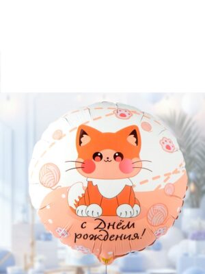 10930956 ШФ 18″ (46см) Круг «С Днём Рождения!», ПушМяу кошка