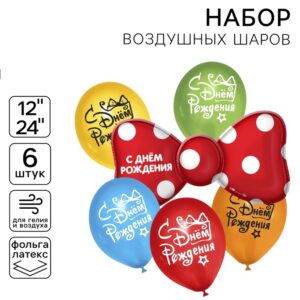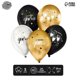 10103628 Набор шаров 12″(30см) «С днем рождения», бокалы, 5шт