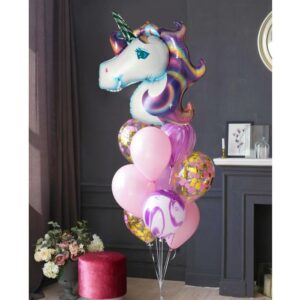 3622315 Фонтан из шаров «Единорог», с конфетти, латекс, фольга, 10 шт.