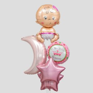 4877840 Букет из шаров «С рождением девочки», луна, звезда, младенец, фольга, набор 5 шт.