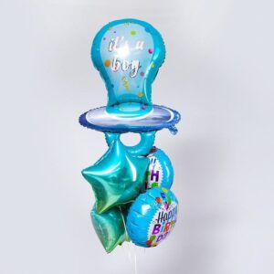 5414619 Букет из шаров «С соской. На выписку – мальчик», фольга, латекс, набор 5 шт.
