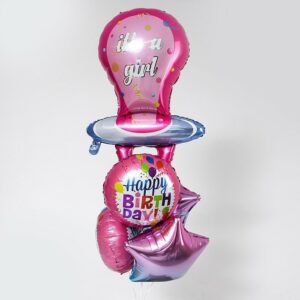 5414620 Букет из шаров «С соской. На выписку – девочка», фольга, латекс, набор 5 шт.
