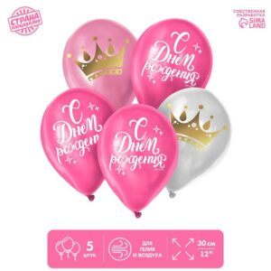 7847181 Набор из шаров «С днём рождения», корона, 5 шт.
