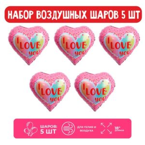 9509898 Букет из шаров «Я люблю тебя, разноцветные сердца»; 5 шт.