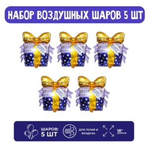 9509958 Набор из шаров «Подарок с золотым бантом»; 5 шт.