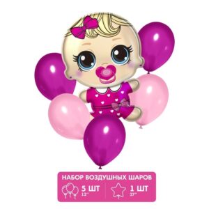 9292685 Набор ШЛ 12″(30см) «1 Годик», для девочки, 5 шт.