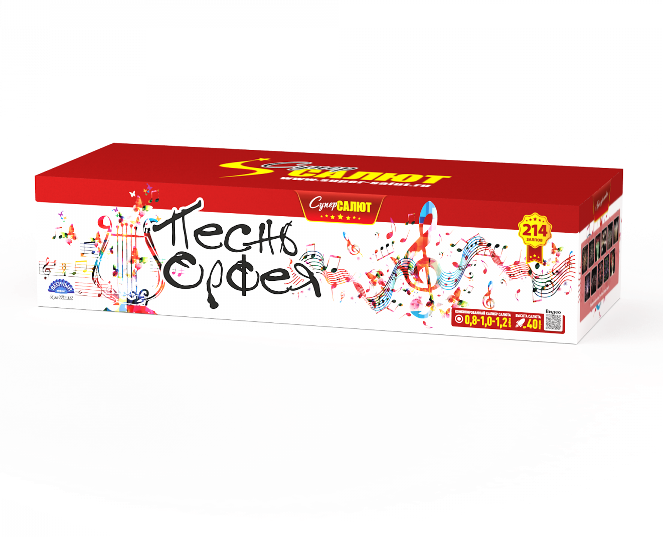 Батарея салютов, калибр 0,8-1,0-1,2″, 214 залпов, время работы до 70с, высота взлета до 35м, 1 эффектов.